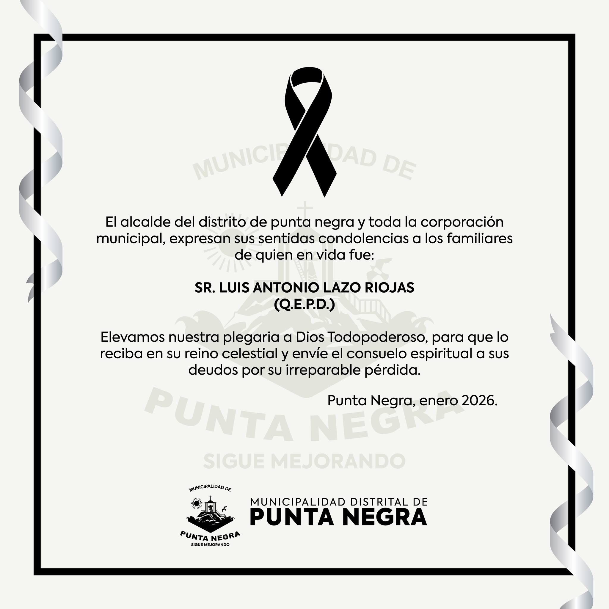 La Municipalidad Distrital de Punta Negra hace llegar sus más extensivas condolencias️