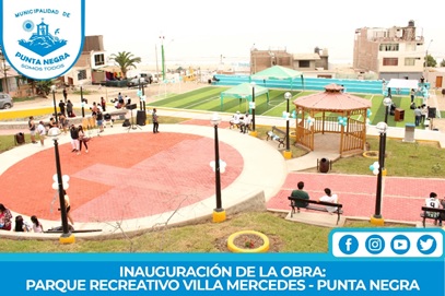 La Sra. Alcaldesa de Punta Negra, Julia Ibet Tataje Taboada, realizó este Sábado 19 de Febrero del 2022, la inauguración y entrega de la obra: "Mejoramiento del Parque recreativo en Villa Mercedes - Punta Negra", la cual beneficia a los vecinos del sector que ya cuentan con un mejor espacio público y recreativo.